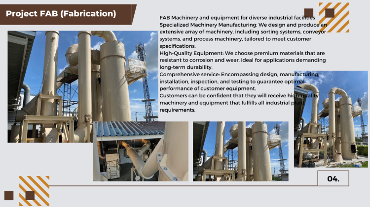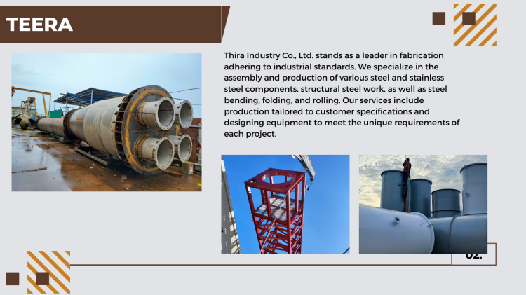 is a leader in fabrication services, specializing in steel structures and sheet metal works tailored to meet diverse industrial demands. With a commitment to excellence, we adhere to the highest standards in Thailand, including TIS (Thai Industrial Standards), to ensure precision, durability, and safety in every project.