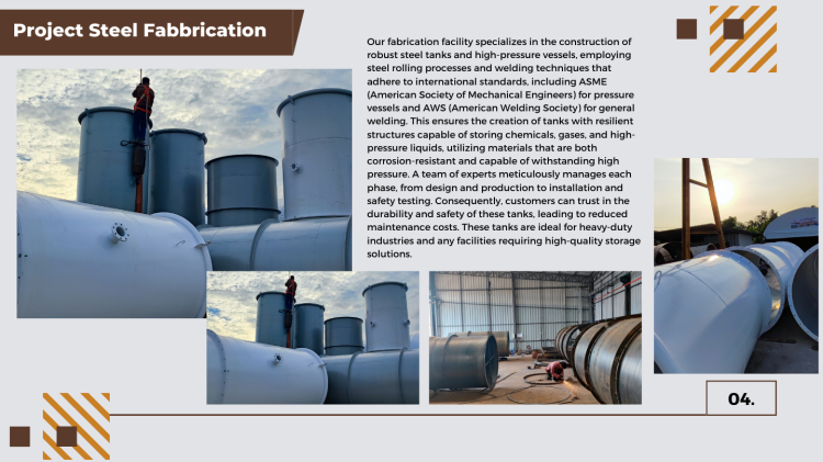 Our fabrication process complies with ISO 9001:2015 standards for quality management and follows the strict safety guidelines set by OSH (Occupational Safety and Health Standards of Thailand). Every project undergoes rigorous inspection and testing, including non-destructive testing (NDT), to ensure the integrity of the materials and construction.